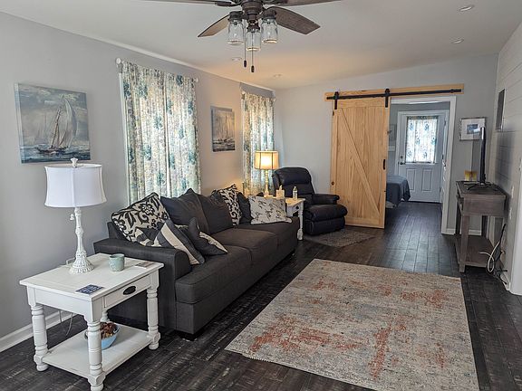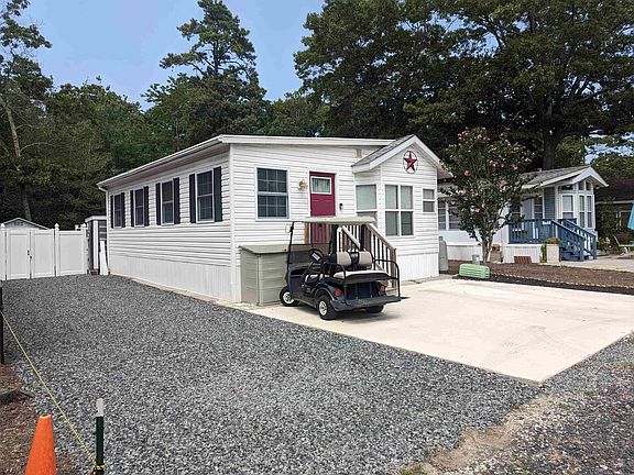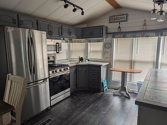 Fantastic perimeter unit with 2 FULL bedrooms. Bambo Laminate flooring, Stainless-steel full-size appliances with a convection range that is also an air fryer. Wine cooler built into the eat in island. Large dining table, storage in the hallway, nice size bathroom with skylight, storage and ample shower. Original mobile master has built ins. In 2017 the Florida room addition was added on, all new windows throughout, large 2nd master added to addition with barn door and rear exit onto your 12x24 almost new trek deck with vinyl railings and FULLY vinyl fenced in rear yard with storage shed and outdoor shower. Perfect for pets and kids. Tankless hot water heater, appliances less than 3 yrs. old, new toilet, Queen sleeper sofa with upgraded sleeper top, 3 TV's, 2019 roof all redone, new stone driveway plus a concrete pad for parking. This unit is located on quiet cul-de-sac and is a must see!