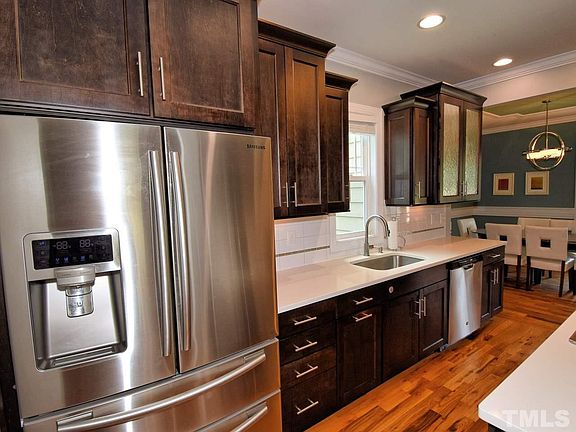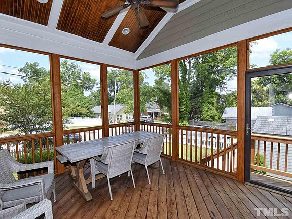 Experience the best view of Raleigh downtown skyline. Custom details with sealed crawl space, open flowing layout, double front porch, hardwoods in main, gas log FP, tankless water htr, upgraded kitchen with quartz countertop, stainless steel appliances and under cabinet lights. Crown moldings galore w/ high end finished throughout. Enjoy the large screened porch, mud room, large patio and fenced yard, with plenty of room to play yard games and entertain friends. Flex room on first floor.
