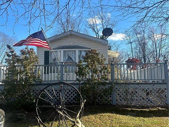 EVERGREEN VILLAGE WITH VIEWS! You will love the panoramic views from your beautiful deck with ramp. Entertain guests in the enclosed porch or use for storage. Need more storage? There is a huge shed to the rear of the property. Home offers a spacious eat-in kitchen with modern appliances and computer desk. Just off the kitchen is a convenient laundry area. Relax in the living room and read a good book. Comfort awaits with two bedrooms, two full baths (one with walk-in shower and skylight), Built in 1999 and has central air! This community offers amenities to enjoy including: in-ground pool, clubhouse, lakes, and tennis courts. Great LOCATION AND VIEWS! This 55+ community has attractive mature tree lined streets. Make your appointment today.