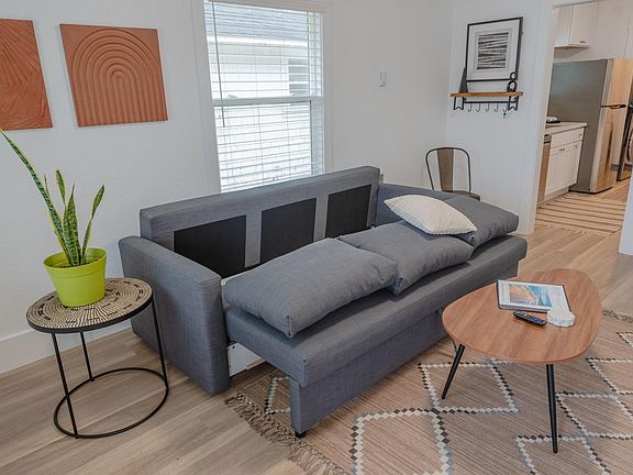 **PLEASE NOTE: This is a furnished corporate/temporary rental and is only available for terms of 30-90 days at a time. Please send the dates that you are inquiring about so we can check availability and pricing. Additional dates and pricing are negotiable. A lease and background check is required to remain in compliance with Oregon Tenant Law. This property is FULLY furnished and INCLUDES all utilities, including WIFI & yard service & monthly housekeeping service. Perfect for a business traveler, relocation, damage or sale of your current home, or a temporary job assignment. We also have other properties available on our website InvestREPM dot com. #InvestREPM Goldfinch Cottage Coos Bay! Beautiful and recently updated cottage close to downtown Coos Bay Shopping, Dining & Entertainment. (6-8 blocks walking distance). This is a 2 bedroom- 1 bath cottage that sleeps up to (4). This private cottage with updates and amenities throughout offers a comfortable place to stay in Coos Bay. Fully furnished, Cable & WIFI, full kitchen, WD and FREE parking; dog Friendly with an additional Pet Fee. #InvestREPM Goldfinch Cottage Coos Bay! Conveniently located to downtown Coos Bay, North Bend, & Bandon. Spacious & updated cottage located just blocks from the bay, close to downtown Coos Bay Shopping, dining and entertainment. (6-8 blocks walking distance). This private cottage is part of our Coos Cottages Collection, offering updated appliances and amenities throughout. Fully furnished, WIFI, full kitchen, Washer and Dryer in unit, and FREE parking; dog friendly with additional Pet Fee. Fully set up kitchen to make cooking enjoyable and efficient. Full size stainless appliances including refrigerator, stove, microwave, coffee maker and toaster to create efficiency. Dishes, utensils and basic cookware included for your convenience. Dining area features dining table with seating for up to (6) and each unit is equipped with a desk in the living area to make working remotely a breeze. Curl up on the comfy sofa with a blanket and a book, or catch up on your favorite shows. Sofa folds out to a full-size bed for additional (2) guests. Large 50-inch flats screen Smart TV, complete with Netflix, and streaming platforms complete the necessities! There are two comfortable bedrooms, both offering a King size bed. Quality linens provided and closet space for storing guests' personal items. Bathroom has a shower and all bedroom and bathroom linens are high-quality and tastefully decorated. Hairdryer and basic essentials and paper products are available for your arrival. Full-size high efficiency washer and dryer provided in the home. There is free street parking on Ingersoll as well as private designated parking in the back of the units. We do allow up to (2) pre-approved dogs with an additional pet fee of $150. Unfortunately, we do NOT accept Cats due to allergies. Be sure to let us know that you plan on bringing a pet and to read and understand our Pet Policy before booking with a pet. Pack and Play is available onsite. Please let us know if you would like us to set up the Pack and Play for you. **This property is available for stays of 30 nights or longer and requires a separate lease agreement AND a criminal background check, in order to remain in compliance with Oregon Tenant Law. Professionally managed by Invest Real Estate & Property Management DBA Invest Real Estate Redefined. Monthly housekeeping is provided and required. THE NEIGHBORHOOD & GETTING AROUND: This property is located approximately 6-8 blocks from downtown Coos Bay and the Bay front. Take a Historic Walking Tour of Coos Bay learn to Build a Boat or Tour the Dunes. Visit downtown's Coos Art Museum for world class exhibits. Enjoy the nationally acclaimed Oregon Coast Music Festival in July. Visit the annual holiday lights display at nearby Shore Acres State Park in December. Coos Bay's downtown farmer's market on Wednesdays is very popular. With the ocean just a few miles away, the Bay, and abundant coastal rivers and forests, you can enjoy great fishing and a wide variety of outdoor activities. Downtown Coos Bay is within walking distance and there is limited public transportation. A trio of state parks are located just 13 miles southwest of Coos Bay: Sunset Bay State Park, Shore Acres State Park, and Cape Arago State Park. Sunset Bay State Park offers extensive picnic and overnight camping facilities, with a spectacular half-moon bay boasting shallow swimming areas and sandy beaches. Shore Acres State Park features the luxurious gardens from the original estate of pioneer lumberman and shipbuilder Louis J. Simpson. A fully enclosed observation building now occupies the site of Simpson's mansions, offering spectacular view of rugged seascapes, towering storm waves, and glimpses of migrating whales from December through June. The extensive gardens are home to carefully curated plants from around the world, featuring stunning seasonal blooms and a holiday light display from Thanksgiving to New Year's Eve. Shore Acres Holiday Lights has over 300,000 holiday lights with numerous light sculptures and 30 large trees decorated by community groups, including one by the City of Coos Bay. One mile to the south, Cape Arago State Park has outstanding overlooks, hiking trails, picnic tables, and excellent opportunities for viewing tidepools life and marine mammals (whales, seals, and sea lions). A hiking trail, which is part of the Coast Trail, connects the three parks. If you plan to head out to our wonderful beaches along Cape Arago Highway (which dead ends at Cape Arago) there is a shortcut route from south Coos Bay to Charleston via Libby Lane. It makes Charleston 10 minutes away versus 20 or 30 minutes going through town. This property is available for temporary short-term leases for up to 90 days at a time. Additional dates and terms are negotiable. $250 Refundable Pet Deposit