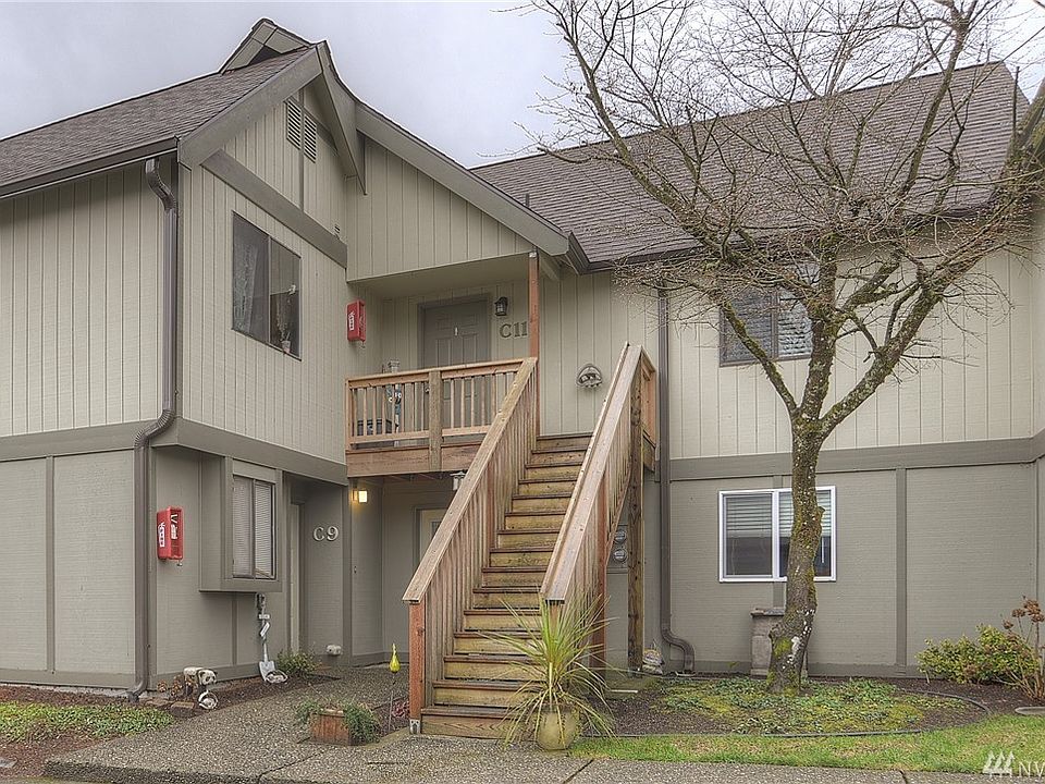 Top floor 1-story townhouse style condo close-in Tumwater! This remodeled condo comes w/all newer appliances, 1 year old heat pump & 1 yr old furnace, new dual flush toilets, pergo laminate flooring, tile throughout, white mill work & air conditioning. Master bedroom boasts dual closets & the second full bath. Affordable condo dues ($215.00) include all exterior maintenance (excluding windows), access to clubhouse, gym w/newer equipment, outdoor pool, community garden & grassy picnic area.
