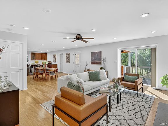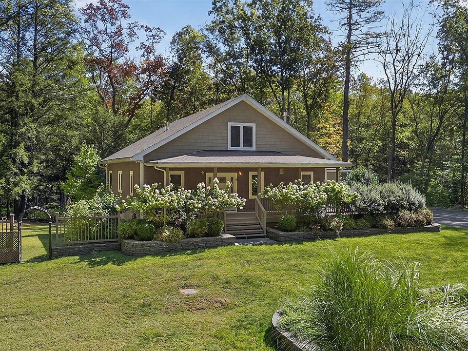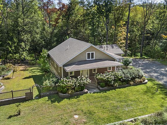 Tucked back from the road, with beautifully landscaped grounds, bluestone walls, and mature plantings, this 3-bedroom contemporary home offers privacy, abundant natural light, and versatile living space on 4 tranquil acres.