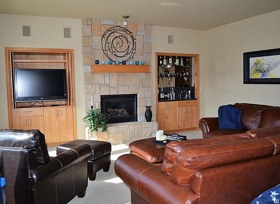 Key Bay Community Waterfront. Waterfront and Pool across the street. Beautifully finished with great Lake Views. Elegant home, perfect for full time or 2nd home. Huge master suite w/office & large 12 X 12 walkin closet. Master bath includes oversized shower, double sinks, vanity, granite countertops, slate tiled floors. Both Living room & family room have wet bars & fireplaces. So much room to spread out. Kitchen includes Gas cook top, ice maker, double oven & compactor. Tiled deck w/sound
