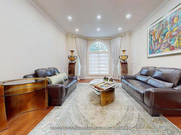 Custom Luxury Home in the Heart of Thornhill Discover this one of a kind, custom built residence offering approximately 6,000 sq. ft. of finished living space on a large, pool sized lot in one of Thornhills most sought after neighborhoods. Designed with timeless elegance and exceptional craftsmanship, this home imperfect for both entertaining and everyday living. A circular custom stone driveway accommodates up to 7 vehicles, setting the tone for the luxury inside. The grand open to above foyer with a skylight and abundant pot lighting creates a bright, welcoming entrance. The main and second floors feature 9 ceilings, enhancing the spacious feel throughout. A fully finished walk-out basement provides everything needed for relaxation and entertainment, including a large recreation and games room, a full kitchen, a bedroom, a 3 piece bath, and a private spa area with sauna and hot tub. Step outside to enjoy a deep lot surrounded by mature trees, offering privacy and tranquility. This home has been meticulously maintained and is ideally located just minutes from top rated schools, parks, shopping centers, public transit, and major highways.? A true gem that must be seen to be fully appreciated!