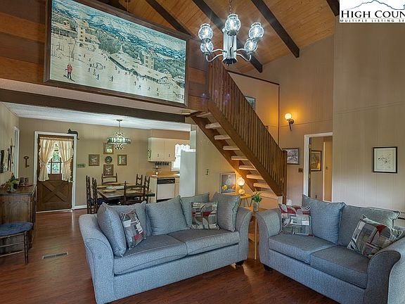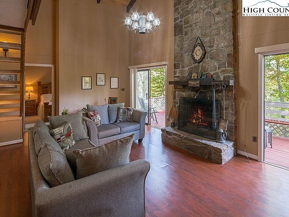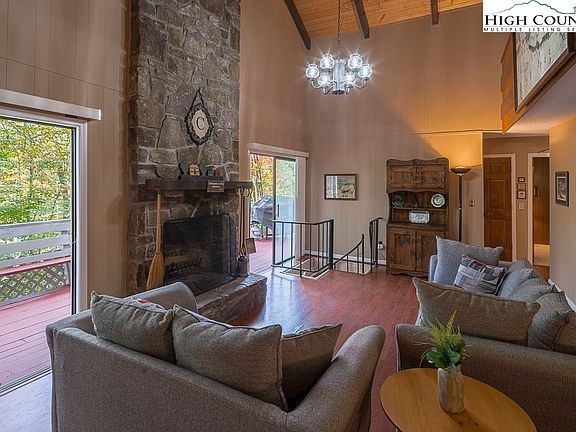 SHORT WALK TO : Beech Mtn Club 13 acre REC Park - 4 Bedroom, Three Bath & Den ELEVATION 4,435 feet. MAIN FLOOR: Large Great room with massive wood burning fireplace, 3 bedrooms, dining, kitchen, laundry and large outdoor decking. Lower level - large Den, Bar & Shower bath. Upper level 12'X24' Loft bedroom & gaming area. New exterior stain. Fully furnished. Beech Mtn Club membership available upon payment of new member fee. VIRTUAL TOUR online