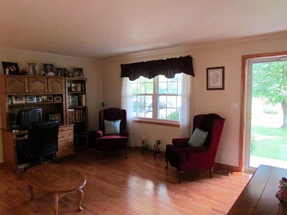 THIS HOME HAS BEEN WELL CARED FOR AND IT SHOWS! There have been many upgrades to this home through the years including: tilt in replacement windows, gorgeous hardwood floors, bathroom remodel, kitchen remodel with loads of cabinets, addition of a cozy den that includes wood ceilings & exposed brick as well as a fabulous covered patio that you will love spending time enjoying. This home also features a large, level yard and outbuilding. YOU MUST SEE INSIDE! Located across the road from the city lake.