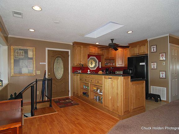 Walk inside and discover captivating lake view looking out over big protected cove-this wonderful lake home features huge covered patio, ideal for grilling and a good ole fish fry! Main floor features great room with fireplace, kitchen, and sunroom, two bedrooms, full bath and laundry-downstairs features bedroom or additional family room, full bath and storage-walk out to lake. Workshop with water and electric-dock with sitting area and floater. Located on year round, deep water. Covered 2 car carport. Perfect weekender or year round living!