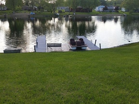 Great lakefront living at an affordable price. This 3 bedroom 2 bath Ranch style home sets on a level lakefront lot with 70ft. of frontage. Home was built in 1988 and has a partial basement with an oversize attached garage and a workshop. Included in the sale is a John Deer riding lawn mower, snow blower, Appliances, Nice 2 slotted pier, and a large air compressor that is installed for garage use. Furnishings throughout the home are negotiable.