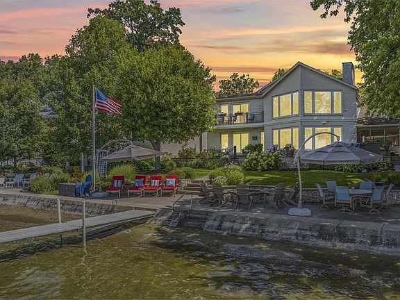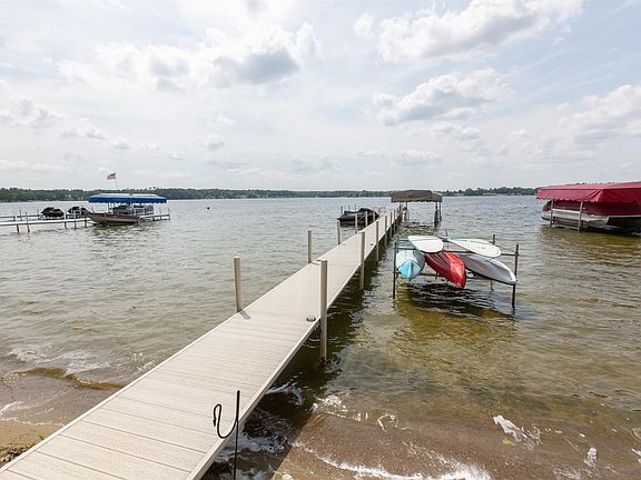 Take a look at this 8 BEDROOM Property! Enjoy living the good life on Crooked Lake GOLD COAST! Enjoy the 77' of sandy swim beach, Fire pit near the lake-shore and several balconies overlooking the 1st basin. This peaceful setting is waiting for you to just bring the toys... Inside you'll appreciate the great room boasting 17' ceilings and a floor to ceiling fireplace, with a 3-sided balcony overlooking the lake-front. The main floor also includes the large open kitchen with newer appliances, granite countertop, separate cook-top and dual oven. Large farm sink with lots of preparation space. In the cabinet next to the sink hides the trash chute to the trash bins in the lower-level. Nestled into the kitchen island you'll find a lift from the basement garage area to the main level. Off the side of the rear entrance is a small entertaining space that includes a built-in commercial ice maker and beverage cooler. The Main bedroom is located off the living area and includes a large patio door leading to a private balcony. The Main Bedroom En-suite includes heated floor, tiled walk-in shower, double vanities, private water closet, and large soaking tub. An additional main floor bedroom is adjacent to the Main bedroom. In addition, one of the 2 laundry rooms. The upper-level Loft space includes a home theater with overstuffed seating, wet bar, game table, shuffle board, and pool table. The ultimate entertaining space!!! The lake side of the balcony is large enough for a home office space or a reading nook for the occasional rainy day at the lake. Two additional bedrooms on the upper level. One with a spa-like en-suite, private balcony, and fireplace. The second bedroom also boasts an additional bathroom. In the lower level you'll find a large garage / workshop space along with additional storage and flex rooms and another full bathroom. That's not ALL! The additional guest house behind the main home provides additional room for guests in the 2 apartment like spaces. Each apartment has 2 bedrooms, Kitchenette, living area, and full bath. Across the street is a unique property. The 2048 SF building with a 10 ft O/H door will save you storage problems for all the lake toys! Imagine having year-round storage at your back door!!! Additionally, the outdoor kitchen under the covered porch makes for great outdoor entertaining. Amenities include a hot tub, fire pit, whole house generator, irrigation, 2 separate HVAC systems, security. SEE DOCS.