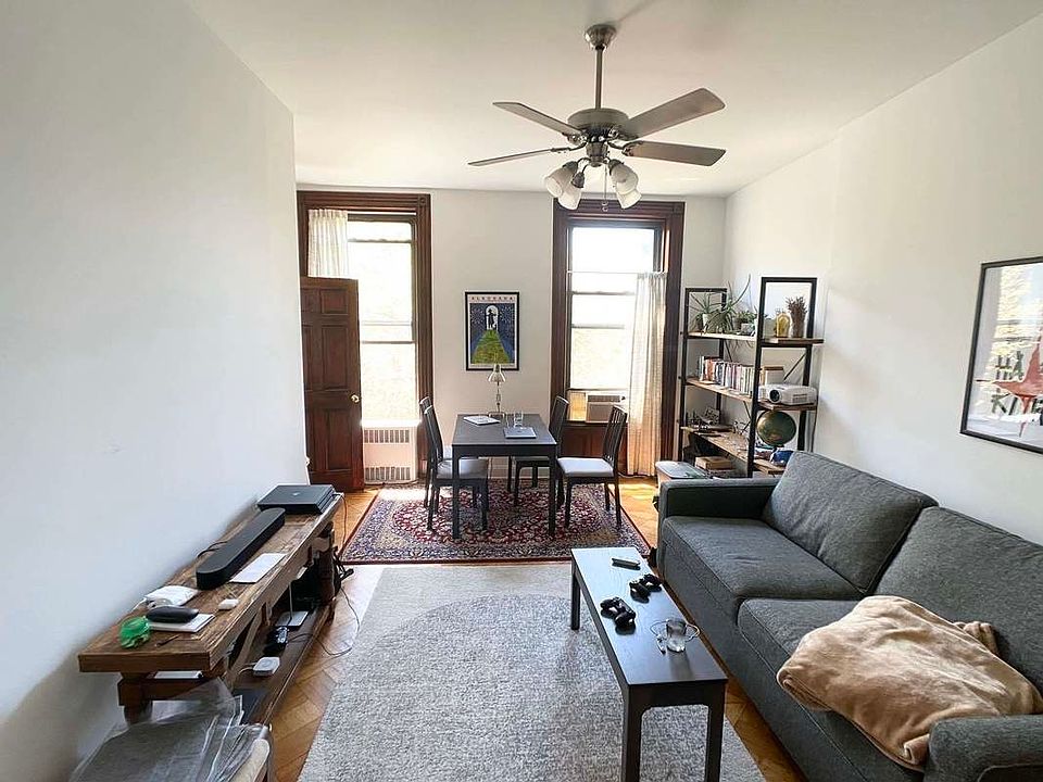 Huge one bed apartment in prime Park Slope in a brown stone building. This apartment features 10 foot ceilings, huge windows and tons of natural light. It is rear facing so very quiet and faces a green garden aspect. There's laundry in the building and bike storage. The staircase is a very wide. Cat friendly, no dogs.