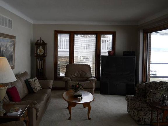What a beautiful view of the lake from this home. It has 100 feet of lake frontage. The home has all new Pella windows. A new vinyl dock and pier are included. The septic system was replaced 2 years ago. The furnace is a 90% efficiency with an attached humidifier. It has a reverse osmosis water system. It has a 2 zone irrigation system. On the property is also a 28X30 detached garage to store all the toys.