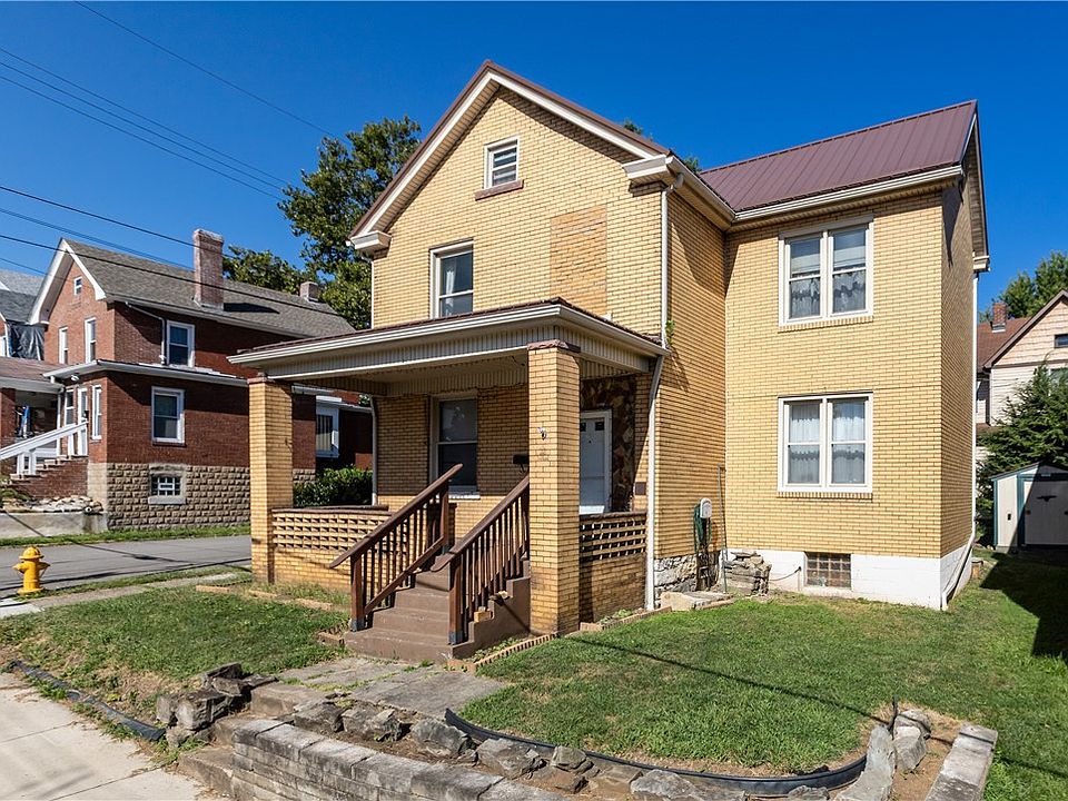 Welcome to this brick built home on a corner lot in Clairton. This 3 bedroom, 2 full bathroom home is ready for it's new owner. The kitchen has been updated with granite counters, new white cabinets and a stainless refrigerator. Stone work, a detailed ceiling and a wood burning fireplace make the living room cozy. Enter the home through the large covered front porch or the side entrance. The living room and den add character to this 1656 sq. ft home. A large main bedroom and 2 nicely sized additional bedrooms are upstairs with a full bathroom both upstairs and on the main level. The unfinished basement can be accessed from the backyard by the shed that conveys with the home. The roof was updated less than 10 years ago to a metal roof.