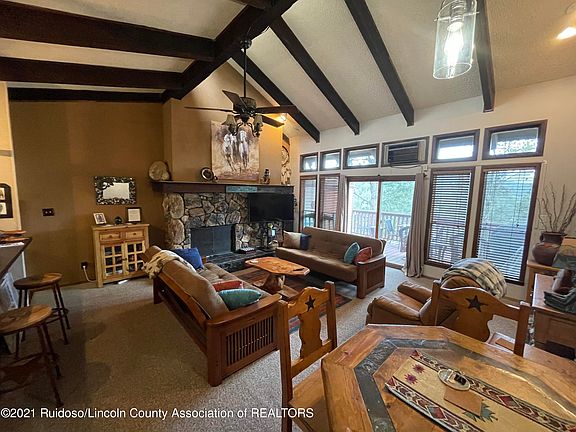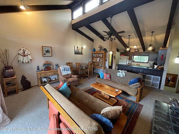 GREAT LOCATION WITH PANORAMIC VIEWS! This 2BR/1½ BA is fully furnished. Open kitchen, dining and living area floorplan. Nice deck for entertaining and relaxing. Near Ruidoso's Midtown shopping and dining. Central heat and ac. A Must See!