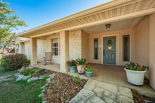 Gorgeous country homestead located south of Kerrville on Lower Turtle Creek Rd E, off of Highway 16. Immaculately kept ranch style stone home with 3 bedrooms & 3 full baths. Open floor plan with a main living area and 2 flex spaces that would be perfect for an office, music room or play area. Updated kitchen with shaker style cabinets, quartz countertops, a butcher block island and new Whirlpool electric range. Enclosed back porch area is a beautiful, light and bright 2nd living area with lots of windows and hardwood floors. Large primary bedroom has an ensuite bath w/ built-in linen closet, an exterior door and a large walk-in closet. The 2 guest bedrooms each have their own bathroom. There is a perfect view from the front of the house of a vineyard that is located across the road. Attached 2 car garage with additional storage. Carport located on the side of the home and storage shed located behind the home. Home sits off the road which provides the perfect spot to feel secluded in the country, but close to town and all of the amenities that Kerrville has to offer.