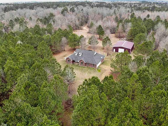 This is a hidden beauty surrounded by 9 wooded acres. Country location NE of Ashdown, AR 4 miles. High end features like arched windows and doorways and crown molding throughout. Flooring is hardwood and ceramic with all countertops granite. Awesome eat in kitchen with island bar with sink, custom ktichen cabinetry with pantry. vaulted great room with fireplace. Separate dining room. Large covered patio in back. The guys will fall in love with the 40x50 foot shop on concrete slab and insulated.