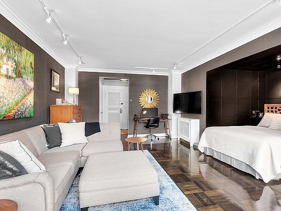 This spacious and thoughtfully designed home features open Madison Avenue views, a separate sleeping alcove, generous living and dining areas, a windowed kitchen, and updated bathroom. Custom finishes include refinished hardwood floors, crown molding, designer lighting, built-in storage, and solar + blackout shades.