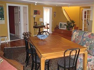 Wellfleet center - two-level penthouse apartment is situated on the top 2 floors of this 1891 antique building. So much charm and antique detail and yet all the modern conveniences of today. Enclosed year-round sun porch with views up down main street - a perfect room to sip your morning coffee and read. Crafted interior stairway leads from living room to upper level family room with a tree-top vista to enjoy along with the lovely features of this room from wood floors, built-in bookcases, half bath, wood stove hook-up and cathedral ceiling. Main level offers an eat-in kitchen with door to exterior deck, two bedrooms plus renovated bathroom; the master suite is separate from the rest of the unit with its own private bathroom and exterior door opening onto the private deck. Extras