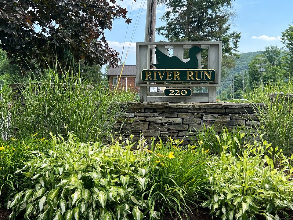 This beautifully updated townhome is centrally located and offers 2 bedrooms, 1 and a half baths, and an attached 1-car garage. Enjoy the calming waters from a peaceful bench overlooking the beautifully landscaped grounds. The open concept floor plan is perfect for entertaining, featuring a sunken living room with pergola flooring and a slider that leads directly to the outdoor patio. The updated kitchen boasts granite counters and modern updates. The second floor includes two generously sized bedrooms, including a primary bedroom with a walk-in closet and vaulted ceilings, along with a full bath and laundry. The HOA fee covers heat, hot water, exterior maintenance, lawn care, snow removal, trash pickup, and property management. Located just minutes from Ski Sundown, the Farmington River, and Peoples State Forest, you'll have access to hiking, kayaking, tubing, and fishing. Plus, you're close to restaurants, shopping, and Bradley International Airport, which is within a 40-minute drive. This exceptional townhome offers modern comforts and a picturesque setting
