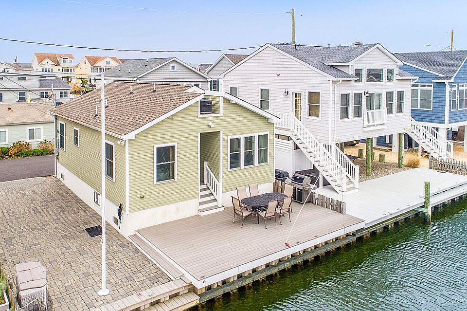 Built in 2012, this 3 bed, 1.5 bath home can fulfill anyone's dreams of having a home on the water, just a few blocks from the beach at the Jersey Shore. The rear exterior features a quiet lagoon with a Timbertech deck and spacious dock, new vinyl bulkhead, and amazing views of Barnegat Bay with sunsets to the west. A natural gas connection for the grill or barbecue is included, as is a spacious crawlspace under the house for storage of outdoor items. The driveway features pavers and parking for two cars. The interior boasts a family room, kitchen with granite counter tops and stainless steel appliances, bar sink, central air/heat, and three bedrooms with closets as well as a washer/dryer. More storage is included in the attic. Int/Ext furniture is separately negotiable.