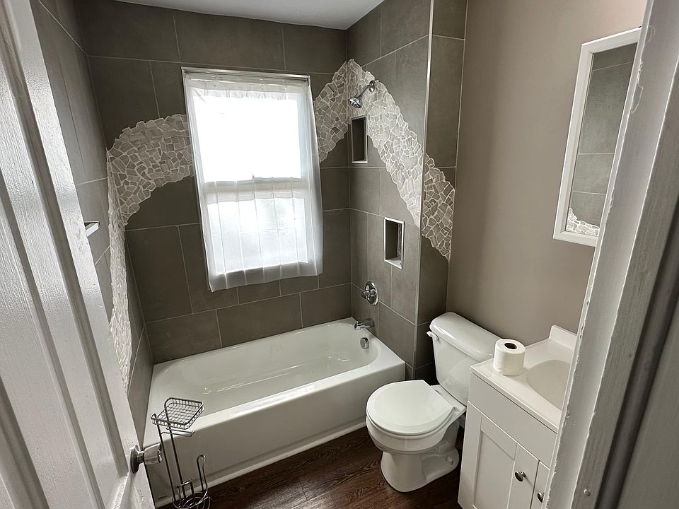 Newly renovated bathroom, bedrooms, and kitchen! House also has an attached garage!
