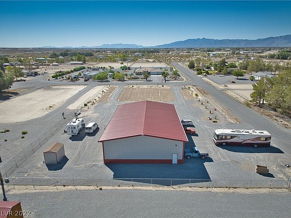 ATTENTION CAR COLLECTORS AND ENTHUSIASTS, THIS IS THE PROPERTY OF YOUR DREAMS!! Designed as a luxury homesite, this parcel is ready for that house you've always wanted! The fully fenced 1.1AC corner lot is set in a quiet neighborhood with incredible mt views is ready to build, with private well, septic and 400AMP power, the hard work is already done. While building your new home stay in your beautiful 1Bed/1Bath casita, 600SF with 9FT ceilings, built with luxury in mind and coming with kitchen appliances, it's move in ready. Now for the star of the show, a 50ft x80ft, 4000SF insulated, industrial grade shop that has to be seen to be believed! Constructed with the best of materials, this is no cheap garden shed you buy off the internet. 17ft walls & 6inch slab, 4 12x14 RV power doors are just a few of the features that make this the best darn shop you've ever seen. All this with low taxes/crime, only a hour from Las Vegas & minutes away from Spring Mt Raceway make this a bargain!