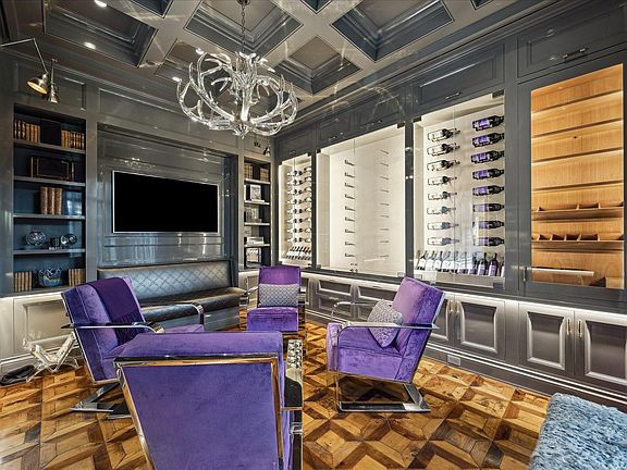 Timeless architectureDining roomMarble slabsLacquered loungeCustom wet barClimate-controlled wine roomGame room
