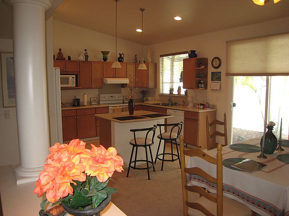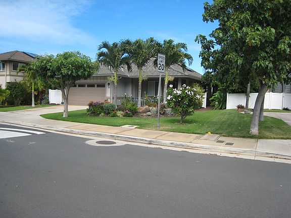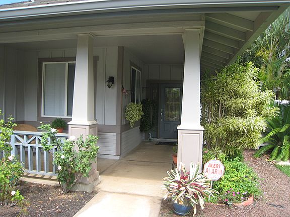 Words of the owners; "Our home is attractive and comfortable. It has been a lot of fun to see the landscaping mature through the years I have been here. Inside, the living areas flow from the entrance,to the studio, to the sitting area, to the dining room and kitchen area. Three Bedrooms, including the well designed master bedroom are in a parallel wing. Several closets along the hallways and the pantry help you keep the home always neat. The lovely architectural features include; high ceilings, high shelves in the kitchen, the archways and round pillars.The entire home is a very spacious 1832 sq ft, relaxing and inviting on one single level. Also, several extras add to the comfort and ambiance of the home." Pride of ownership in one of the largest single story homes in the Na Hoku sub division.Fully fenced backyard/Sitting area/Fountain/Central Air/Tile Roof and much more. Low maintenance yard. Call for your appointment today.