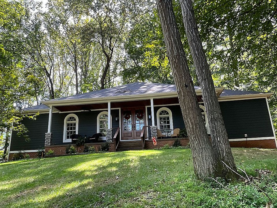Drakesborough subdivision. 5 Bedrooms 3 Baths on 1.97 acre wooded lot. Home has been remodeled with all new exterior hardie board siding, stone columns and a beautiful new double door. Inside new hardwood floors through out main floor other than the two full bath are ceramic tile. Main floor has 3 Bedrooms and has 2186 sq ft. Walkout basement has a large family room, 2 Bedrooms, 1 Bathroom, and laundry room with 1452 sq.ft. Over sized 2 car garage has 660 sq.ft. New workshop/single car garage with carport added in 2022. New HVAC 2022 and new roof added 2023.