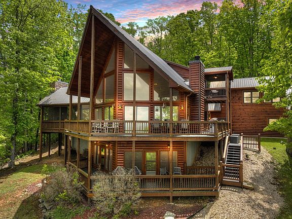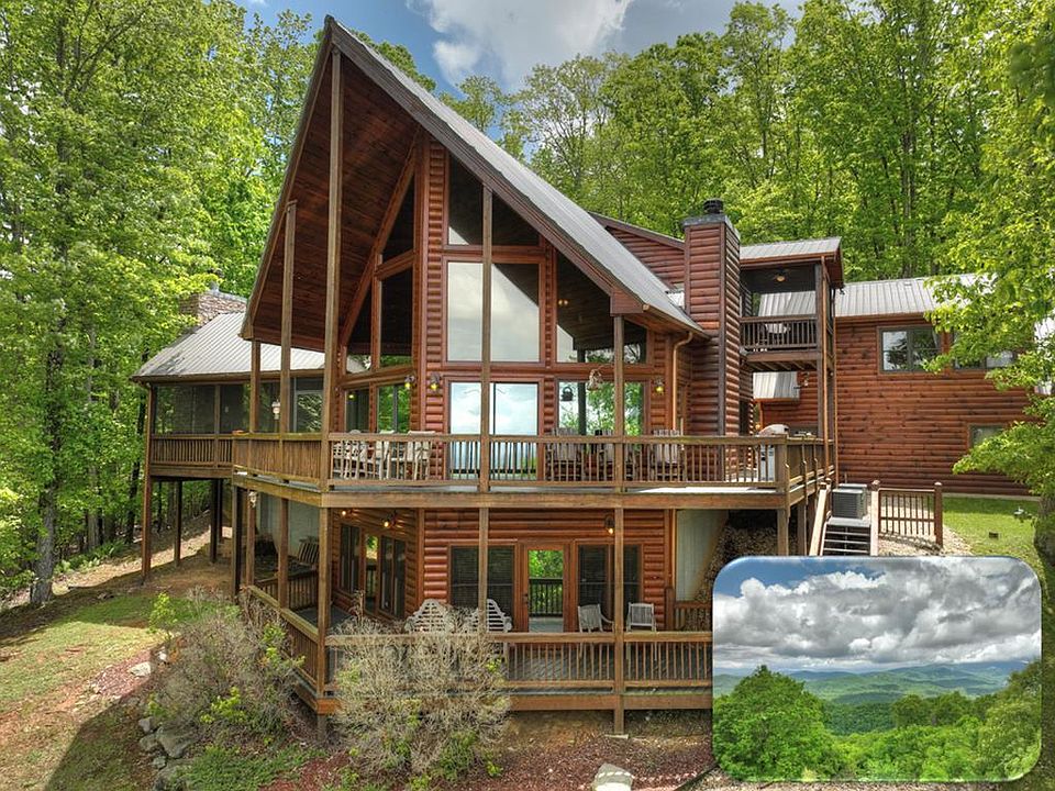 Welcome to your dream mountain getaway! Nestled high atop the exclusive gated community of Mountain High, this stunning 4-bedroom, 4-bath cabin offers unparalleled privacy and Breathtaking Year-Round MOUNTAIN VIEWS! It's rare to find a home with these Big VIEWS with a LEVEL driveway, all paved roads, on a quiet cul-de-sac, with a gated driveway, this property promises tranquility and seclusion, perfect for those looking to escape the hustle and bustle. You'll be captivated by the prow front design with expansive windows that frame the amazing mountain vistas. Step inside to discover a beautifully furnished home, with high-quality furnishings included in the sale, (Selling Turn Key FURNISHED!) Spacious and inviting home boasts 3 fireplaces, granite countertops, wall of windows, and is well appointed throughout! Indulge in the generous primary suite with it's own private deck and luxurious bath featuring a tile shower and jetted soaking tub. The finished basement is an entertainer's paradise, complete with a pool table, wet bar, full bedroom, bathroom, and doors walking out to covered porch and firepit area. Abundance of outdoor living including a large screened in party porch with a wood burning fireplace, perfect for cozy gatherings. In addition to the main house, this property features a 2-car garage with charming guest quarters adding valuable extra space and flexibility. This mountain haven is the perfect blend of rustic charm and modern luxury. Whether you're looking for a full-time residence or a vacation home, this cabin offers everything you need for a comfortable and relaxing lifestyle. (Generac Generator) Don't miss out on the opportunity to own this exceptional mountain property. Schedule a private showing and make this dream cabin yours! (VIEWS are even better in person!)
