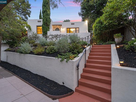 This delightful Mediterranean home combines vintage character with extensive redesign enhancements: insulated windows, HVAC systems, all new kitchen and bathroom giving you gracious living with all the attractions of the Piedmont lifestyle. Relax in the spacious living room, with a gas fireplace and recessed TV & bookcases. Step into the dining room with a view of a stately redwood tree or into the sun-drenched atrium. The bedrooms each feature twin closets for ample storage and enjoy tranquil garden views. Between them is a warm redwood-paneled bathroom, featuring stone tile and a HydroSystem spa/tub. The cheerful kitchen is remodeled with new cabinetry, a Bosch range, a LG refrigerator, a Miele dishwasher, and a laundry closet with a new LG stacked washer/dryer. Glass-paneled patio doors lead to the outdoor living space where you’ll find a Mediterranean strawberry tree, and fig, lemon, and kumquat trees. The garden’s new deck, with custom built redwood benches sits just beyond a lovely olive tree, provides an ideal venue for relaxation and entertaining. Surrounding the home is a new path of tumbled stones, redwood fences and mature trees. Exceptional Piedmont schools, two beautiful parks and Piedmont Ave shopping & dining are a short walk away. See disclosures for all upgrades.