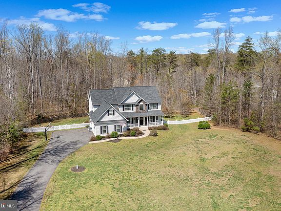 Welcome to your dream home! This stunning Colonial-style residence, built in 2014, offers a perfect blend of modern comfort and timeless elegance. Nestled on a generous 3-acre lot, this property is a serene retreat that backs to lush trees, providing a peaceful backdrop for your everyday life. Step inside to discover a warm and inviting interior featuring five spacious bedrooms and four and a half bathrooms. The open floor plan seamlessly connects the family room to the kitchen, making it an ideal space for gatherings and entertaining. The kitchen is a chef's delight, equipped with SS appliances, upgraded countertops, a double wall oven, a cooktop, and ample space for a breakfast area. Enjoy cozy meals in the dining area or step outside to the deck or patio for al fresco dining surrounded by nature. The fully finished basement, complete with a walkout entrance, offers additional living space perfect for a game room or home theater. Convenience is key with a main floor laundry area and an attached side-entry garage that accommodates three vehicles. The exterior of the home is equally impressive, featuring beautifully landscaped grounds with a level yard, perfect for outdoor activities. The partly wooded lot provides privacy and tranquility, while the no-thru street ensures a peaceful environment. Close to VRE, I95, Quantico, shopping, historical sights and Crow's Nest. This property is not just a house; it's a place to create lasting memories. Don’t miss the opportunity to make this inviting home yours!