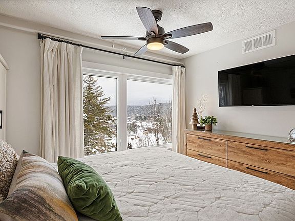 We purchased this 2 bedroom/ 2 bath property, our second unit at Mountainside Resort, for three reasons: we love the location which is near to everything; we were captivated by the year- round spectacular views from the upper floor oversized deck; and we recognized it's tremendous earning potential as an investment property. We updated this property for maximum comfort. Most of the other units for sale in Mountainside have one window box AC unit and the primary heat source is supplied by a gas woodstove. We added a new two zone mini- split heat and air conditioning system. We also addressed some issues with our water system by adding a new hot water heater with injection pump to create more water pressure and hot water. In addition, all new windows were also added in 2022. Other upgrades include: all new kitchen appliances, Quartz countertops with custom backsplash tile and under cabinet lighting, hall and master bathrooms were gutted and renovated, all new tile for flooring and walls, increased the size of the hall bathroom shower, added a frame-less glass door in in hall bath, added all new lighting fixtures throughout the unit, new sinks and bathroom cabinets, new custom closets in both bedrooms, slate tile in the entrance/laundry area and Kitchen. Despite having used this property often for our own vacations, with the help of our local professional management company, we grossed over $60,000.00 in 2023 rentals. We currently enjoy over 60 great reviews on Air BNB See other link in listing for reviews. This property is being sold turnkey and furnished, with a few personal property exceptions such as some art pieces and the outside deck furniture is different.