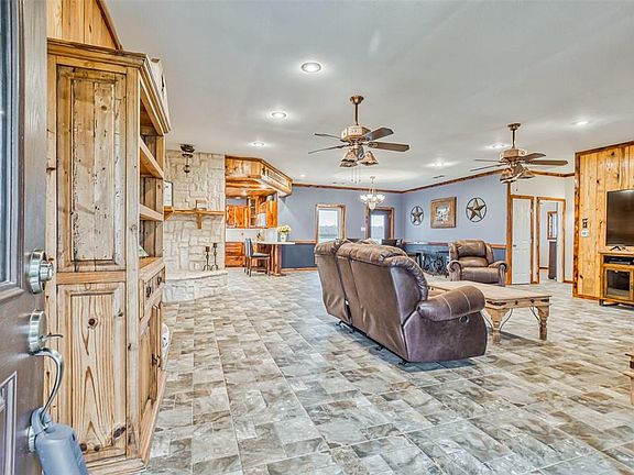 Beautiful 6 acre ranch with a custom built home and huge workshop! This one story ranch style home has a large wrap around porch with views of the 2 stocked ponds, wildlife, and piped fencing around the entire property. This open concept, split floor plan home has beautiful pine crown molding throughout. Upgrades include new tile throughout main areas in '18, new windows and exterior doors in '18, new AC and furnace in '19, new paint and blinds, shower in master, double oven in kitchen and more. The 30X40 workshop includes a full bath, extra storage and parking and would be great for a home business. Don't forget the barn and playhouse with electric and water. This property you have to see to believe!