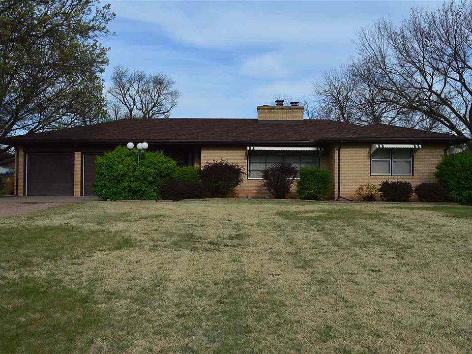 Check out this sprawling ranch on over an acre right in the heart of Clearwater! This home is all brick aside from the main floor family room addition off the back. You are greeted with a large entryway that leads into the formal living room that boasts a large brick fireplace. The formal dining room gives you plenty of space for entertaining and sharing family meals! All three bedrooms are on one end of the house with a full bathroom conveniently located in between. You will be impressed with the huge kitchen, many cabinets, a pantry and loads of countertop space. There is also space to incorporate a table for an eat-in kitchen. Just off the kitchen you will find the awesome main floor family room. This is the perfect spot to relax and enjoy time with the family. There is so much natural light that pours into this room from the three sets of sliding glass doors that line the back wall. There is a gorgeous stone, woodburning fireplace and wooden beams to add the final touch to the ceiling. Don't miss the main floor laundry room and the second full bathroom. The mud room off the laundry room is another added bonus to this house. Downstairs you will find a wet bar that could be used as a mini kitchen as there is a gas line hook up for a stove and a spot for a refrigerator. In the middle of the rec room, there is a two way fireplace with built-in seating all the way around. The concrete storm room is great for our Kansas weather, and it even has an escape hatch that leads to the garage. You will also have all the storage you need! There is a large storage room just off the mechanical room in the basement. The exterior of this home has so many positives as well! There is a 30x40 outbuilding that has a concrete floor, electricity, a heater, and two separate garage doors. There is a lean to on the east side of the building too. The second storage building in the backyard is 10x15. It also has a concrete floor and electricity. The backyard is fully fenced, and there is a sprinkler system and a well to keep your yard looking great! The property line actually goes another 35 feet to the north of the house so that you could add a driveway access that leads directly back to the outbuilding. Set up your private showing today!