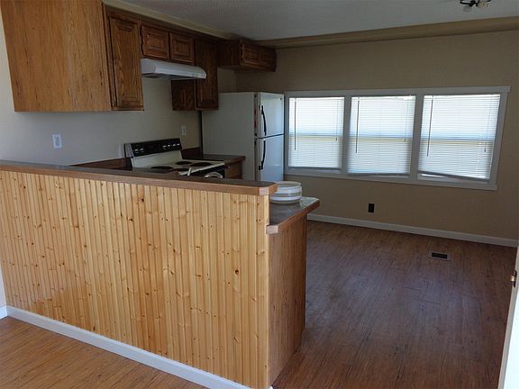 This is a 2 bed, 1 bath trailer. Has a kitchen/dining/front room and a washer and dryer provided.Two doors, each has nice steps/porch. Extra storage in back yard. Yard is fenced on 3 sides.Plenty of off street parking.