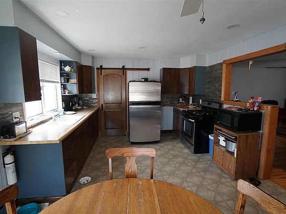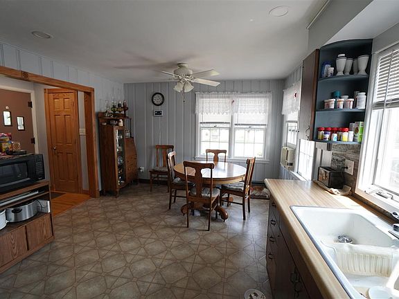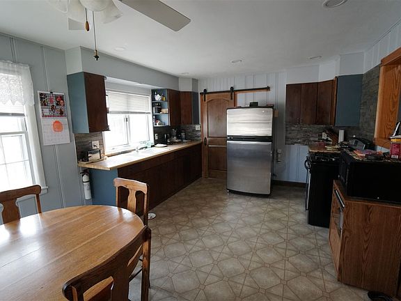 Eye catching brick & vinyl home with all the necessities located on the first floor. Spacious, eat-in kitchen with wide opening into living room. The living room has wood burning stove and custom built surround & beautiful wood flooring. Much of the house has custom oak trim work. Master bedroom leads to laundry area that also houses the master closet. There is more space to be utilized in the walk-up attic which could be used for storage or converted to another bedroom or office. The metal roof was completed in 2017. Oversized 1 stall garage has breeze way connecting directly to the home. The basement also has 2nd wood burning fireplace.