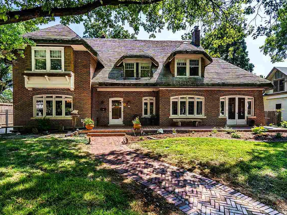 Open House Jan 17th 2pm-4pm. Historic cottage style home with full Brick in the heart of College Hill on large lot. This home features 6 bedrooms and 3.5 baths and grand entertaining areas on the main floor including a sun room. One of the trademark features of the home is the custom shake roof with curved eaves and copper gutters. Another show piece is the original refrigerator with a newly installed compressor. The foyer has newer Batchelder tile and adjacent to the courtyard there is an rare original Batchelder fountain that has been plumbed to work again. The current owners have installed some modern conveniences like PEX plumbing and newer electrical systems and also installed a mini-split HVAC system. The master bath has been totally remodeled with retaining the saddle toilet seat and tub and adding jack and jill sinks. The original laundry chute has been reclaimed and all the hardwood floors have been refinished. The large basement is considered unfinished but very useable with its own exterior entry. The sellers have redesigned the laundry area and added a tub and new plumbing. There is also a craft room, exercise area and TV area. The detached 2 car garage/shop has space above that has made a great apartment in the past. It also has a 1/2 bath but sellers don't think the plumbing is hooked up. As only the 3rd owners of this home they hate to sell this home and cut the remodel short from being their dream estate. One of the sellers is a historian and extensive research was done to ensure that updates were in line with the time period. The sellers have loved living between 1st and 2nd streets on Roosevelt just diagonal from the Historic Frank Lloyd Wright house. This is a historic stretch of homes with great proximity to all of the College Hill conveniences. Please be sure to read the Sellers Biography and history of this home along with the work completed since their ownership located in the attachments