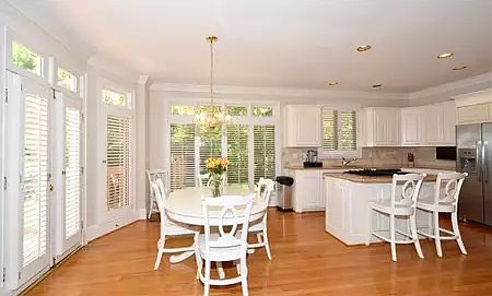 - Kitchen Features: Cabinets White, Breakfast Bar, Breakfast Room, Solid Surface Counters, Kitchen Island