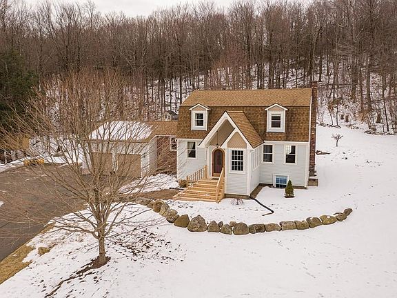 Country Casual Elegance and Comfort on 13.7 acres of privacy! Spacious and Open Floor Plan. Beautiful front Entry great for welcoming family & friends.Large updated Kitchen w/cherry wood top Center Island, Maple Cabinets w/a pearl glaze. Quartz counters, cast iron sink & stainless steel appliances.The cherry floor DR w/crown moulding is open to the Kit.The front to back LR has wide cherry floors, recessed lights & access to a composite deck through double atrium doors.Full Bath on the 1st floor has tiled surround jetted tub.Up the Master Bedrm has cherry flrs, recessed lights, high ceilings & pocket doors to the large walk-in closet. 2 more good size bedrms have carpeting & ample closet space. Need more room?The Basement is nicely finished with a Family Rm Area, Bedroom and a Full Bathroom.Laundry and mechanics separate from the finished Basement.The private yard has a Gazebo, Chicken Coop, 2 person outdoor shower and a tree house! Newer roof & 4 zone Buderus boiler & more! Great home!