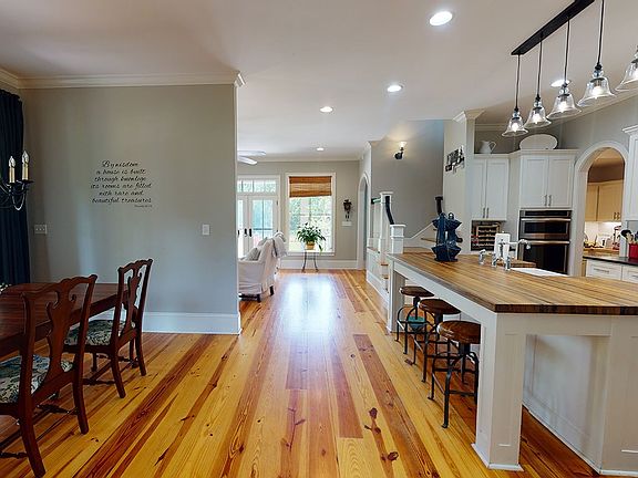 From the moment you step on the charming brick walkway, you know you've found a special place to call home. Off the foyer through the custom barn door is a living area with wood burning fireplace & gorgeous cypress ceiling. Walking back is the open kitchen, dining & main living area with 2nd fireplace. Oversized windows provide views of the private backyard & flood the home w/ natural light. The kitchen offers a gas range, double ovens, farmhouse sink & butcher block island. Off the kitchen is a home office & access to the laundry room & mud room. The tranquil master suite offers great views & the spa like bath has a walk-in shower, soaking tub, & his and her vanities & closets. A guest suite w/ full bath complete the main floor. Head upstairs using either of the two staircases to find two bonus rooms, three bedrooms, two baths & a second laundry room. Whether relaxing on the covered deck, enjoying the new pool, or fishing in Olive Creek, your family is guaranteed special memories.