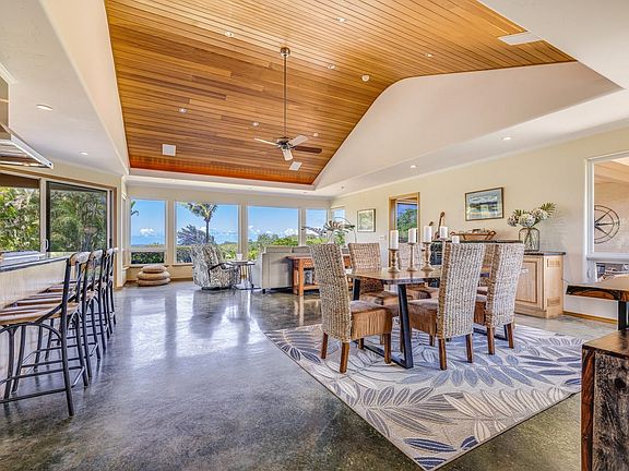 A bamboo and copper entry gate opens to a stamped concrete drive drawing you towards a beautifully designed and intelligently curated home. Set inside the sought-after community of Maunaolu Plantation Estates, welcome to 220 Ohaoha Place. This custom-built residence positioned on 2+ acres was thoughtfully constructed, leaving no stone unturned. Once inside, the calm sets in. This ocean view home provides three independent ensuite bedrooms, a home office, and tv den; all intentionally devised around the central garden courtyard. Envision watching the stars from the rooftop viewing deck or relaxing to the sound of the waterfall and sweet breeze by the pool. The four-car garage aids in storing all your toys & tools, while the two-bedroom ohana offers privacy from the main home while providing the same quality of build and stunning views. Let us not forget the private irrigation system with a 27,000-gallon retaining tank intelligently filled by rainfall.