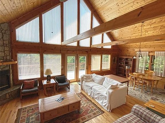 3 BR 3 BA log home nestled in gardens and beautiful woods on 5.5 acres. Walk from the property into the National Forest! Amazing private setting. Mountain Views. Open floor plan. Great room with cathedral ceilings and fireplace. Master suite on main with private deck. Hardwood floors. Lots of porches and decks. Garage. Fruit trees, berries and garden area. Cool Summers at 4000+ feet elevation. Location is in Cold Springs Ranch, and directly adjoins community conservation and nature preservation land with trails, meadows, fishing pond and top of world recreation area with forever long-range mountain views right into the Great Smoky Mountains National Park! You can truly get away from it all here!