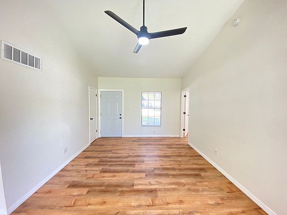 - Exterior features: Fenced Backyard, Flooring: Wood, Large Backyard, New white Cabinets, Security: none, Shed, Stainless Steel Appliances