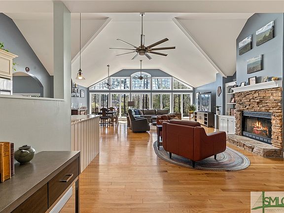 This beautiful one-level lakefront home is situated on over 1.5 private acres offering the perfect setting for a tranquil lake retreat in the lovely Mallard Glenn subdivision. There are 4 bedrooms, 3 baths, 2 sunrooms, a two car garage, covered back porch, and a pool with hot tub. As soon as you walk through the front door, breathtaking inviting views of the lake and mature landscape through the wall of windows in the large great room brings the outside in and begs you to go straight out to the pool or lake. Move-in ready, recent updates include a new primary bathroom, fenced yard, fresh interior paint, smart home thermostats and doorbell, new gas logs, new kitchen appliances including a smart fridge, electric vehicle plug in garage, an RV docking plug, new decking on the dock, new boat lift, freshly resurfaced pool patio, and more.