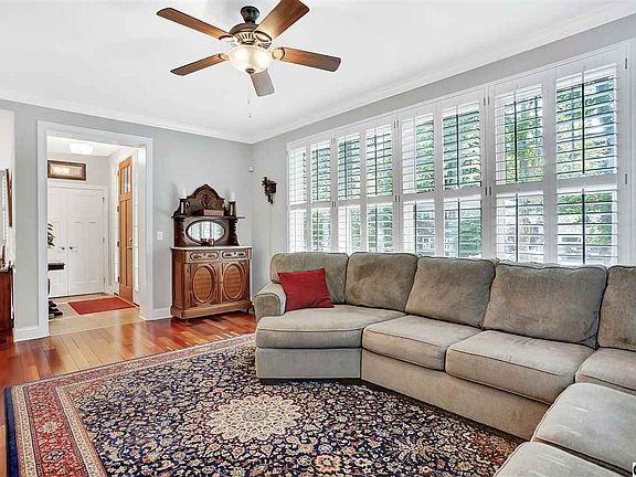Enter into inviting foyer which leads to a magnificent living room with contemporary flare. The gourmet kitchen is packed with many upgrades including upscale granite countertops and beautiful backsplash. Enjoy your morning coffee on private deck off 1st floor master suite! 2nd floor over looks kitchen and upstairs bedrooms are spacious w/ pr baths and WICs. Natural light streams in generous windows w/ plantation shutters. Beautiful Brazilian hardwood floors. Finished LL with wine room completes.