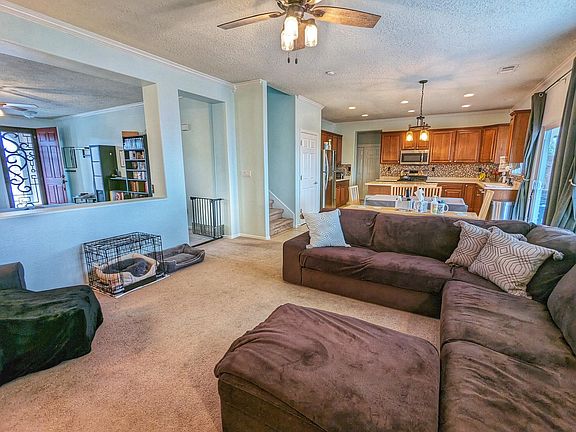 - Ceiling Fan(s), Kitchen Island, Multiple Living Areas, Pantry, Separate Shower, Walk-In Closet(s)