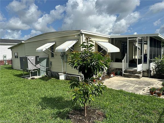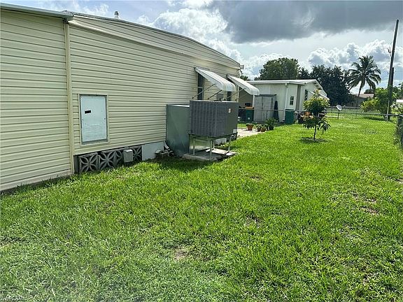 Welcome to this Great Offering in West Wind Estates 55+ Community where YOU OWN the LAND. This open and airy split floorplan boasts the spacious feel you're craving. This home comes Updated with, 2 bedrooms, 2 bathrooms and is located in the desirable East Naples, area. This cozy residence features spacious bedrooms as well as a primary bathroom with double sinks, There is Laminate Flooring throughout, New Paint, Screened Lanai, Reading Area, Huge Carport and an extra storage area for all your belongings as well as the very desirable Generator Hookup and Fenced Back Yard for your Pet. The primary bedroom boasts a large walk-in closet and a convenient walk-in shower. Enjoy the convenience of an interior washer and dryer area included in the unit. This home is situated in an extremely active over 55 plus community with the LOWEST HOA Fees around at only $125.00 per month. Enjoy access to a refreshing community pool for relaxation and enjoyment or get together with your new friends for some pickleball.