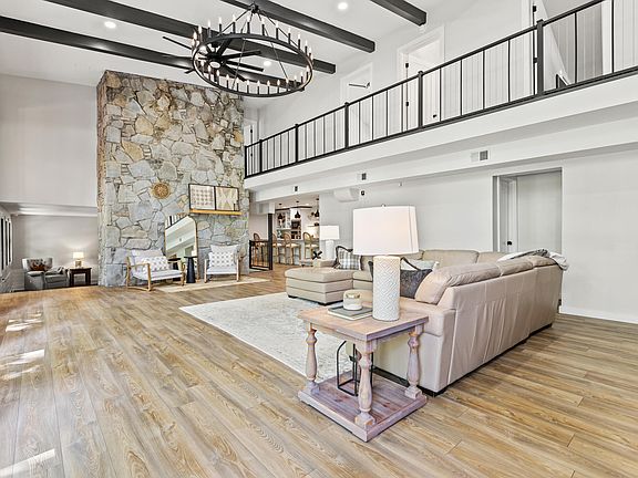 Every detail of this stunning berm-style home is magazine-worthy, from soaring ceilings & dramatic wooden beams to the luxurious finishes throughout. Featuring 3BR/3BA's + a versatile bonus room that could serve as a 4th BR, this home boasts space & function. The heart of the home is the wide-open great room, showcasing luxury vinyl flooring, wood beams & abundant natural light. It flows effortlessly into the gourmet kitchen, complete w/impressive island w/leathered granite, stainless appliances, tile backsplash, a cozy dining nook + a walk-in pantry. A sunken living space offers flexibility - ideal as a formal dining, playroom, home office, or den. The main-level bonus room w/adjacent BA is perfect for guests. Upstairs, you'll find BR's that share a full BA & a luxurious primary suite featuring a private balcony, an spa-like BA w/tiled shower & walk-in closet. Step outside to the elevated patio w/shaded pergola area for relaxing or entertaining while overlooking the lush, wooded lot that provides both beauty & privacy. Plus a large 2-car attached garage +2-car detached garage for ample parking & storage. Located near I-75 and Berea for convenience!