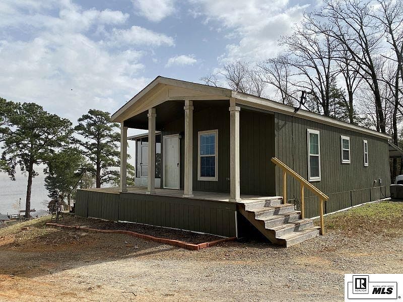 Spectacular lake views can be found on Pleasure Island Road. This one bedroom one bath mobile home offers you panoramic views of Lake D'arbonne. Inside you will find an vault ceiling in the living room with electric fireplace, Whirlpool appliances, breakfast bar, subway tile backsplash, plantation blinds, a generous bedroom and full bath. Outside enjoy the front porch (18 x 16), screen porch (12 x 37) or open deck while entertaining family. There is a carport, RV and tractor shed and storage building (12 x 30)..