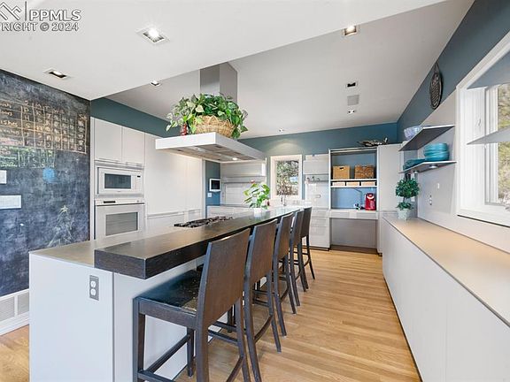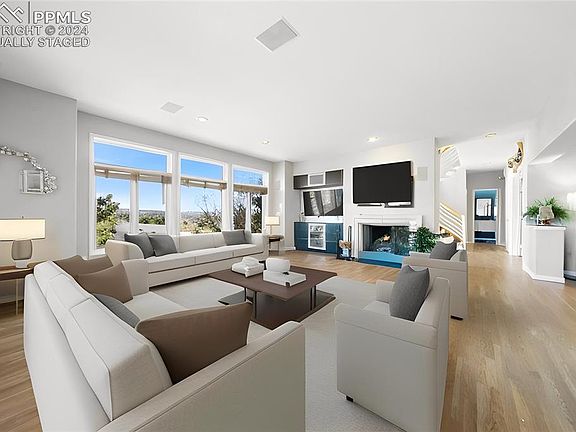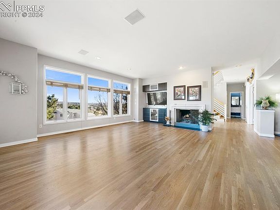 Welcome to your dream home nestled in the privaty Woodmen Oaks neighborhood! This stunning two-story residence sits on a spacious .8-acre lot, backing up to neighborhood open space with beautiful rock formations. Step inside to discover an inviting open floor plan with inviting hardwood floors and enjoy the abundance of natural light throughout the home. The expansive living room with fireplace connects the dining and kitchen. The updated and modern kitchen boasts expansive & sleek stainless steel countertops. The large island with barstool seating is perfect for hosting and makes a culinary enthusiast's paradise. Enjoy the expansive primary suite with its private deck with views of the surrounding natural beauty and attached updated bathroom with large walk-in shower. The basement is perfectly set up for your entertainment or a guest suite with its large wet bar connected to the rec room, theater room, guest bed, updated bath and fitness room. The walk out basement allows ample natural light throughout this level. Outside, your own private oasis awaits, featuring a backyard with a beautiful water feature, a wrap-around deck perfect for enjoying the Colorado weather, and a built-in hot tub ideal for relaxation under the stars. With its blend of modern amenities, breathtaking natural views, and ample entertainment space, this home offers an unparalleled living experience. Don't miss the opportunity to make it yours!